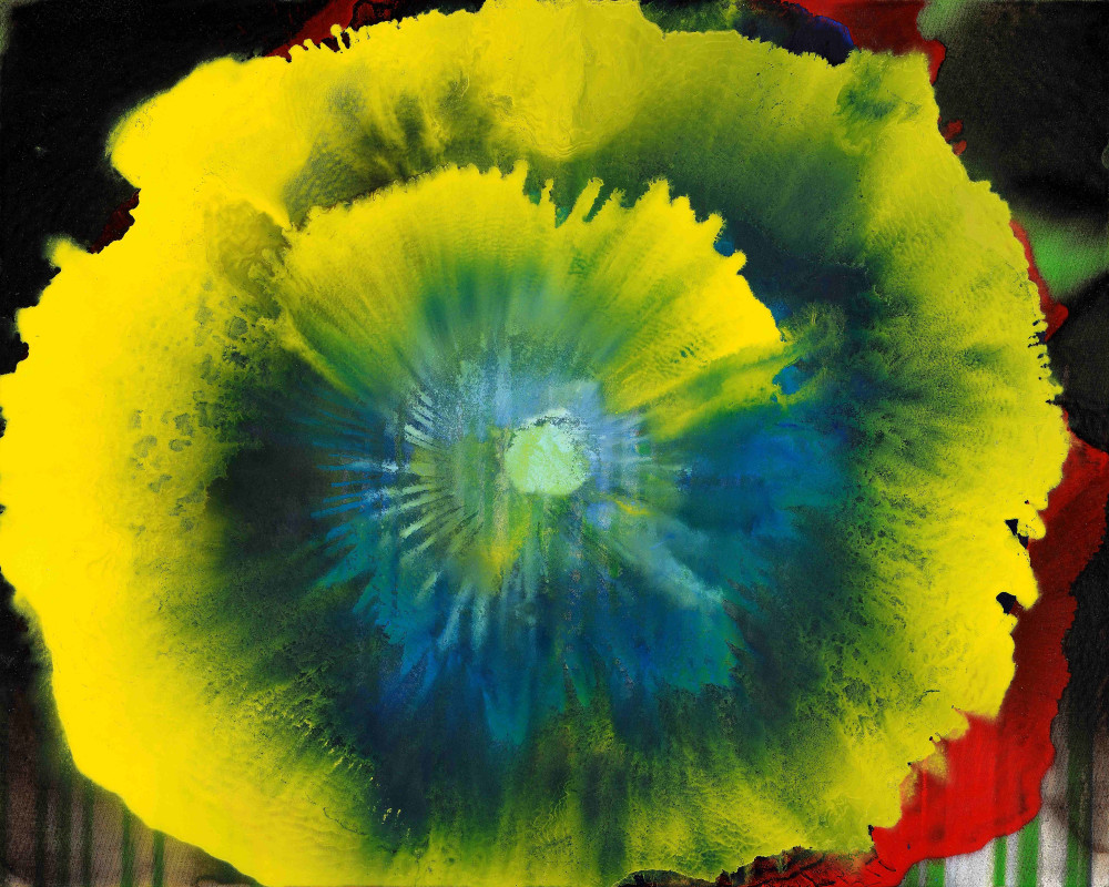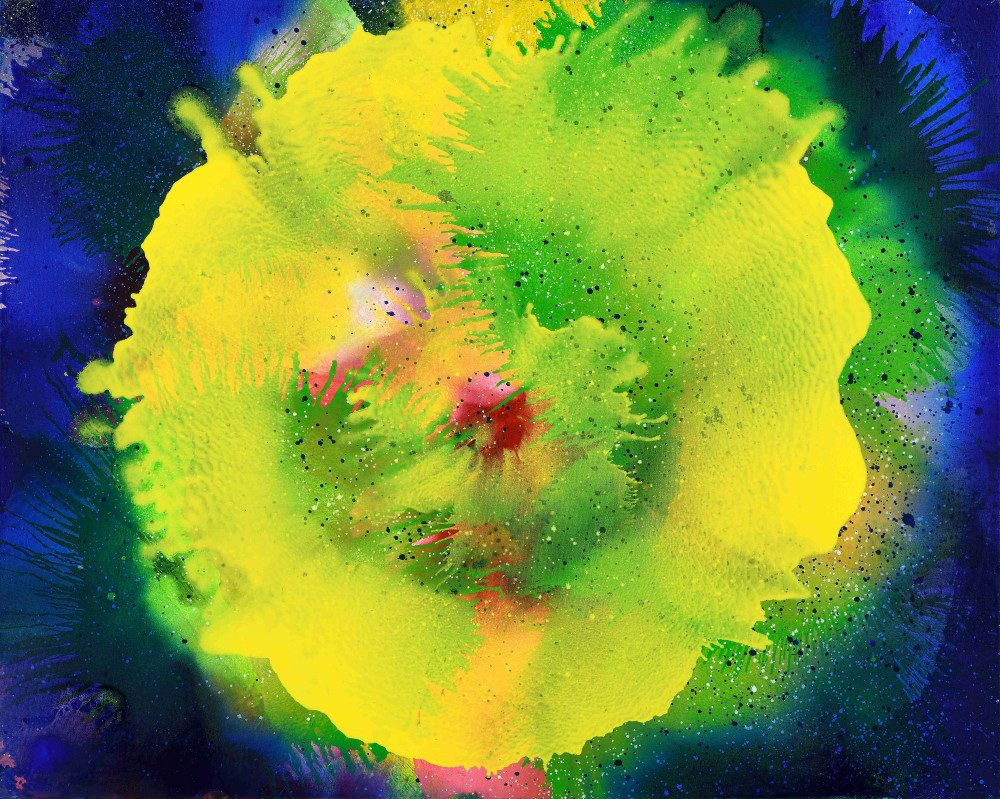 《光之花園》系列作品誕生於2025年春天,江賢二在半戶外的空間裡完成創作。起初他並未為這些作品命名,直到稍後才以「光之花園」作為總稱。這一系列作品型態多元,但展現江賢二近年來自然流露、單純而充滿力量的創作方向。第一批創作完成的《光之花園》作品,大膽探索色與光的變化,飽和的色彩承襲自《比西里岸之夢》系列,但更為凝聚集中,光線銳利簡潔,展現前所未見的形象語彙,有時像花朵綻放,有時像遙遠夜空的星雲,又像微觀世界中無窮的生命姿態。這些作品以錯落的方式組合成整體,彷彿化成一座能不斷延伸的花園;而每一幅獨立存在時,也都自成一個完整而廣闊的世界。